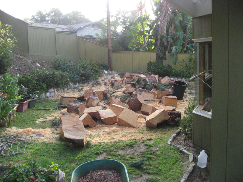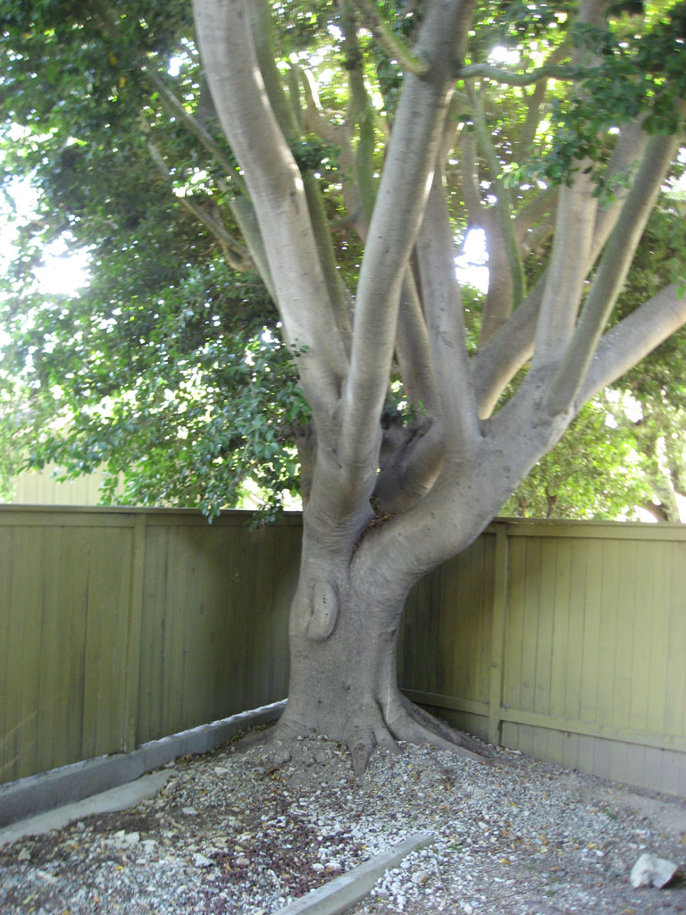First order of business is demolition. The biggest items on this list were a large pine the back yard (a beatiful tree but was hanging over the house). and this Ficus which has terribly overgrown it's space