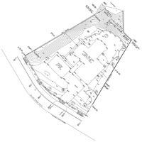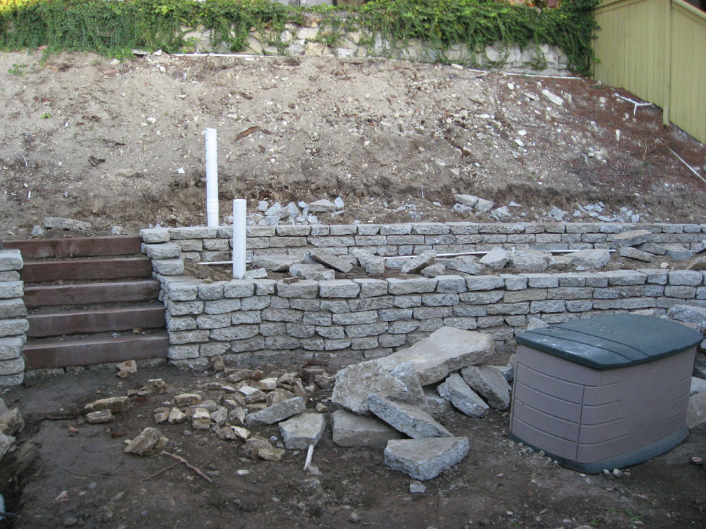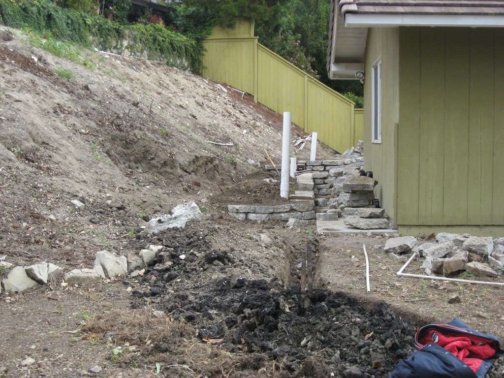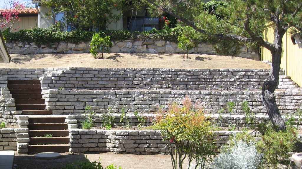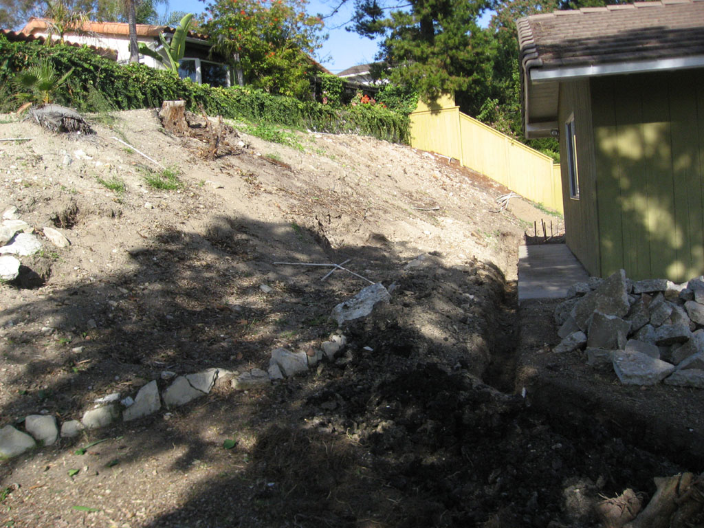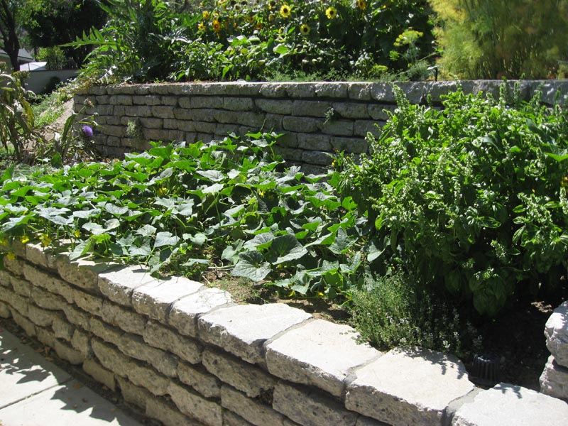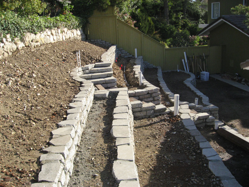 The first two terraces will become vegetable garden. (where the 101 and 105 elevation notes are on the drawing). The space between the walk and the first wall will be rose garden.