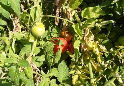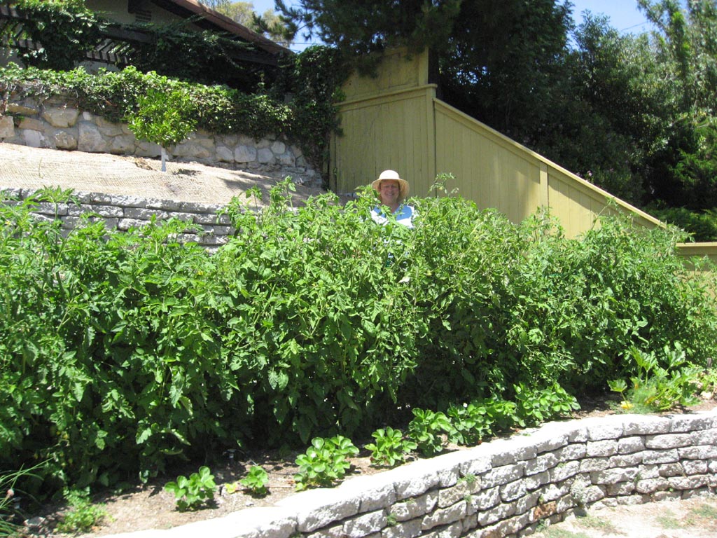 | Well things have certainly grown. Here's a happy farmer standing behind her tomato crop: | |||