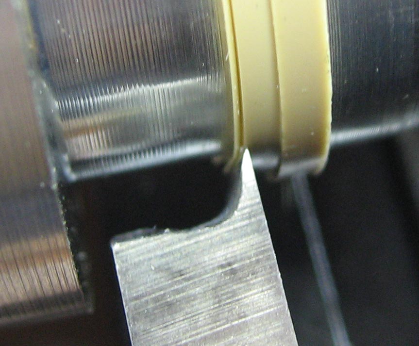 So in a classic case of spending 100x as long to make the tooling as to actually do the job, I fabricated a mandrel to hold the somewhat soft movement ring securely on my lathe. I then ground the back side of a 1/4" lathe tool to make a suitable knife: | |